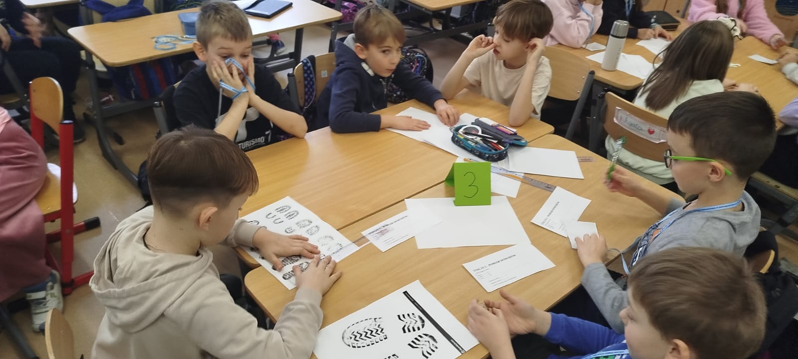 Dzieci analizowały ślady zwierząt i ludzi, rozwiązywały zagadki logiczne, odczytywały tajne wiadomości zapisane niewidzialnym tuszem z soku z cytryny oraz skanowały kody QR z ukrytymi hasłami. W trakcie zajęć samodzielnie wykonały lupy, które pomagały im badać „dowody” pozostawione na miejscu zdarzenia.
