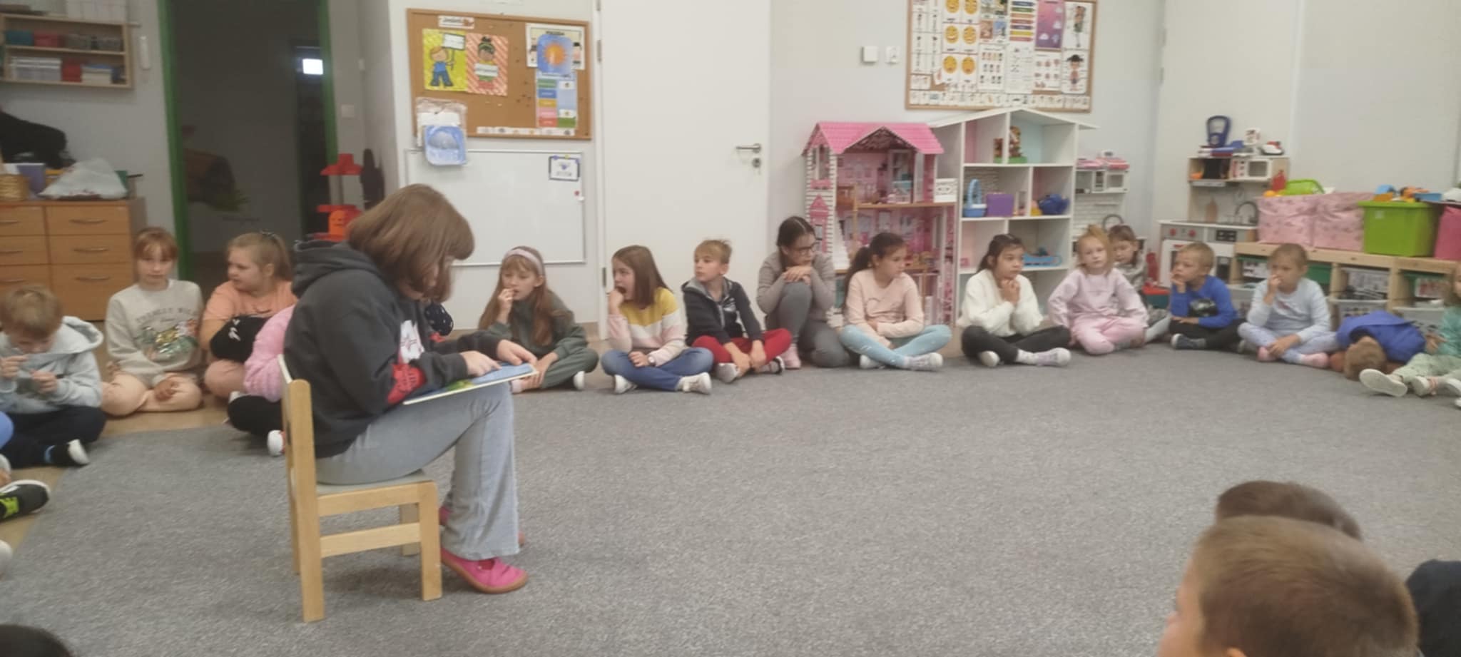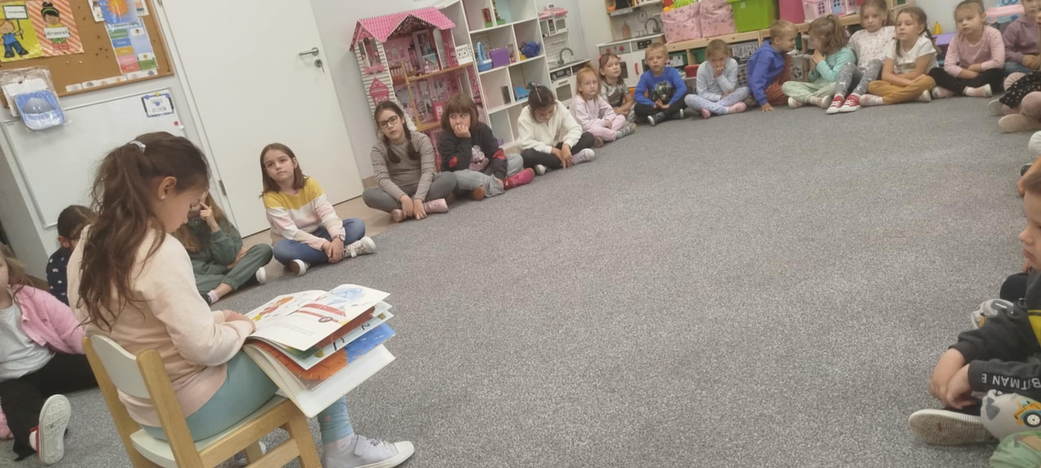 29 września obchodzimy Dzień Głośnego Czytania. W tym dniu uczniowie kl 2 A, odwiedzili swoich młodszych kolegów z przedszkola, aby przeczytać im książkę "Misiu poznaje pierwsza pomoc ".