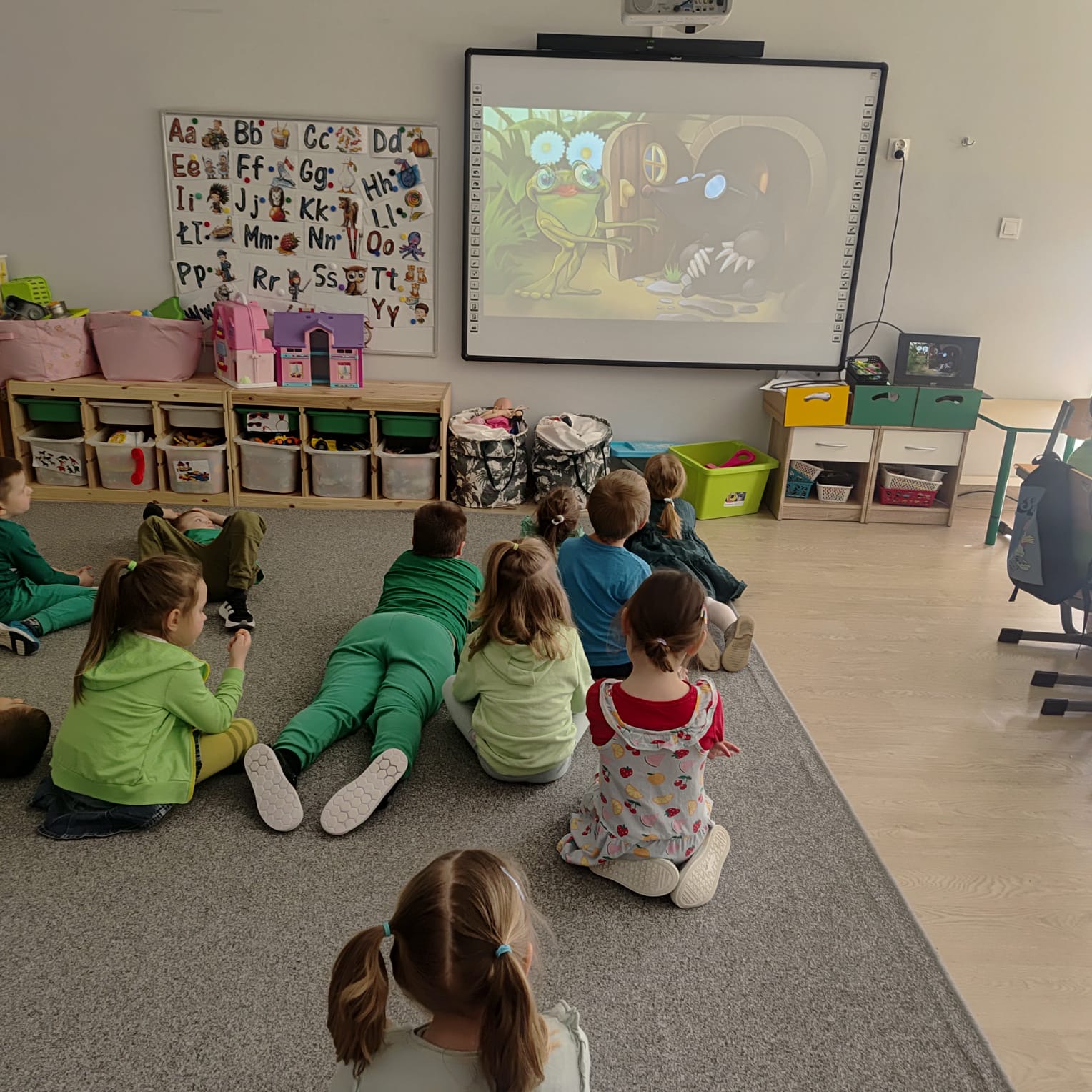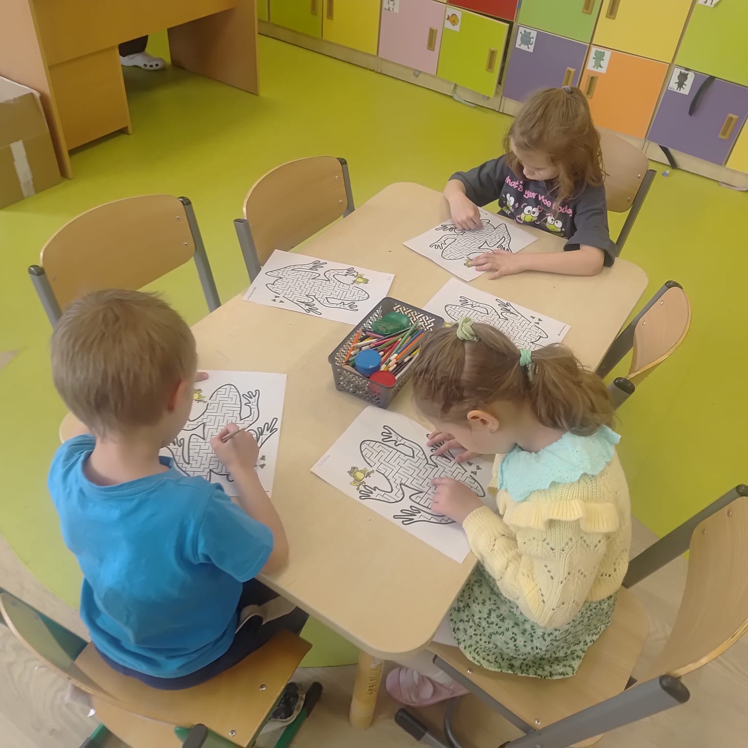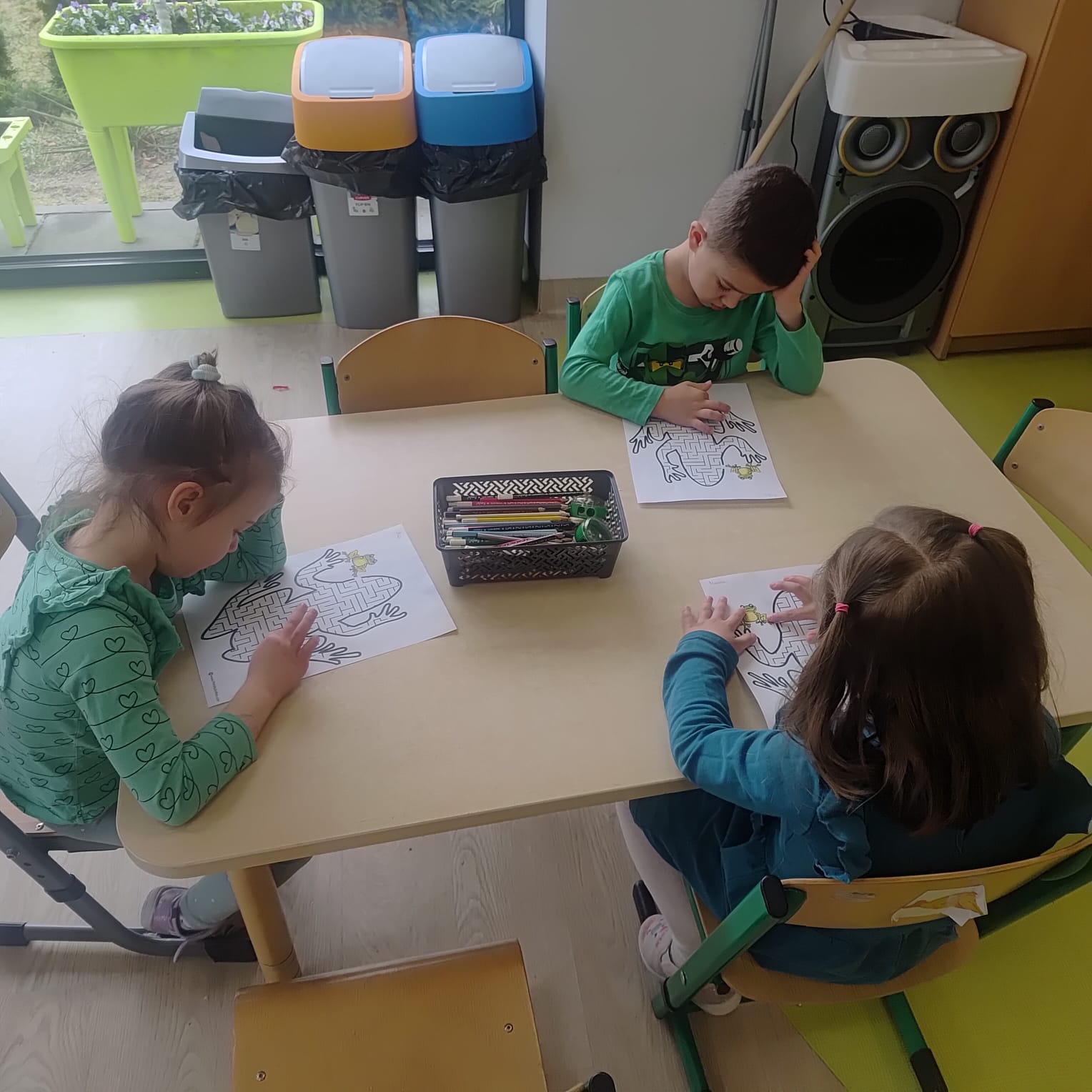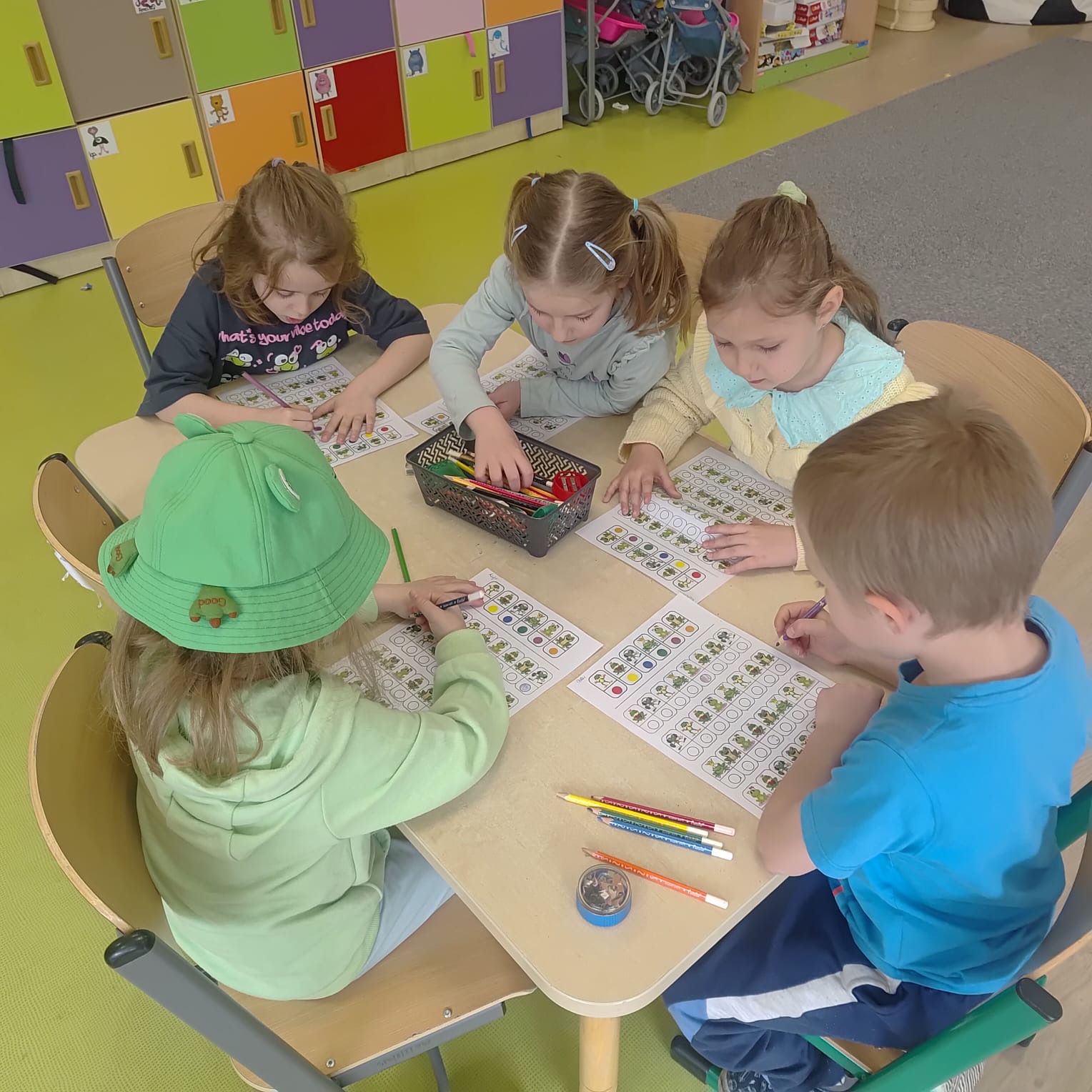 20 marca grupa „Żabki” obchodziła wyjątkowe święto – Dzień Żaby. Był to dzień pełen radości, ciekawych aktywności i zabaw, w całości poświęcony tematyce żab. Dzieci miały okazję poznać cykl rozwoju żaby, dzięki czemu dowiedziały się, jak z małego skrzeku powstaje dorosła żaba. Z dużym zainteresowaniem wysłuchały także opowiadania o przygodach i problemach zielonej żabki, a następnie aktywnie uczestniczyły w rozmowie na temat jego treści, dzieląc się swoimi spostrzeżeniami i przemyśleniami. W trakcie zajęć przedszkolaki wykonały piękne prace plastyczne, rozwijając swoją kreatywność i zdolności manualne. Nie zabrakło również różnorodnych kart pracy – dzieci rozwiązywały zadania z zakodowanymi żabkami, pokonywały labirynty oraz ćwiczyły grafomotorykę. Podczas całego dnia dzieci poznały wiele ciekawostek na temat życia żab, a zdobyta wiedza była utrwalana poprzez zabawy i aktywności tematyczne. Dzień Żaby upłynął w radosnej atmosferze i dostarczył wszystkim wielu pozytywnych wrażeń.
