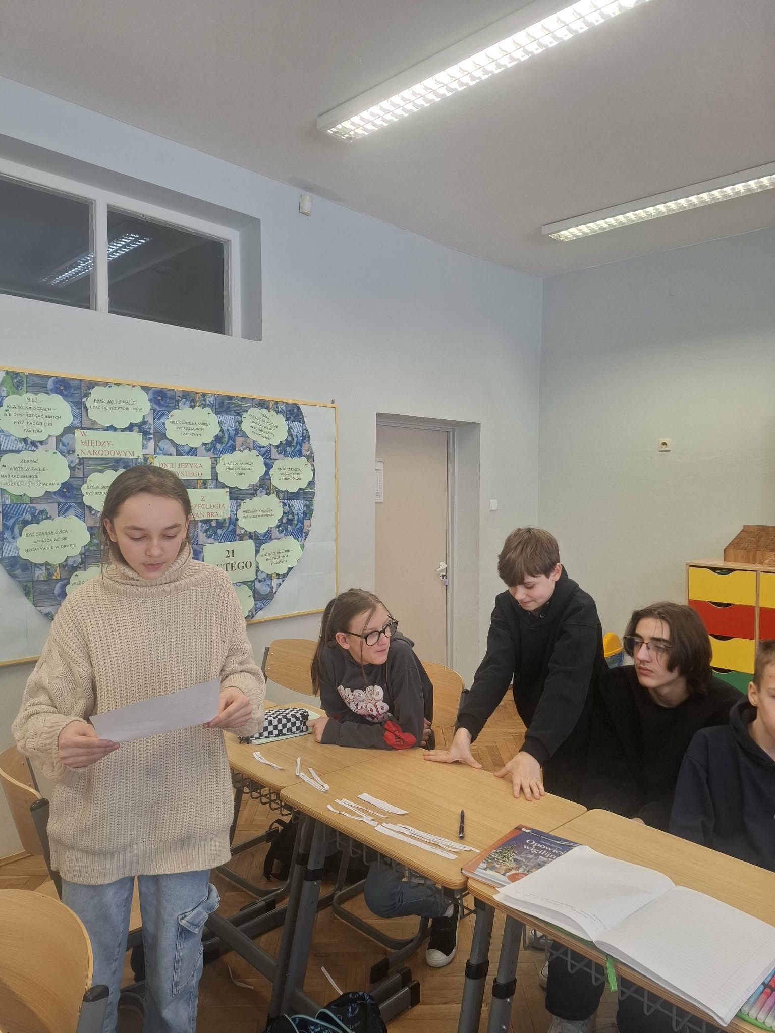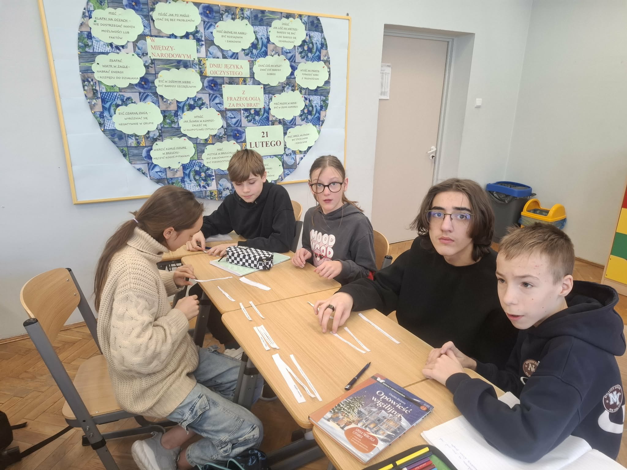 W naszej szkole uczniowie klas IV–VIII wzięli udział w specjalnych zajęciach poświęconych temu wyjątkowemu dniu. Tegorocznym motywem przewodnim było hasło „Z frazeologią za pan brat”, dlatego lekcje obfitowały w językowe ciekawostki, humor i twórczą zabawę słowem.