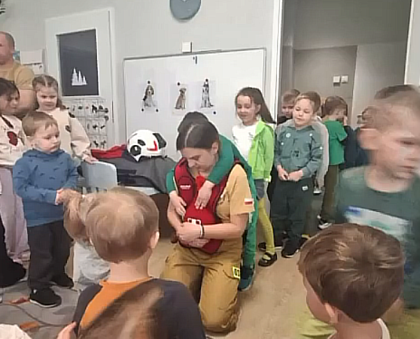 W przedszkolu odbyło się spotkanie ze strażakami z Ochotniczej Straży Pożarnej z Bełdowa- Krzywa Wieś. Dzieci dowiedziały się na czym polega praca strażaka oraz jak należy się zachować, gdy ktoś się zakrztusi. Dużym zainteresowaniem cieszyła się prezentacja kamizelki do ćwiczeń uścisku Heimlicha. To spotkanie było cenną lekcją bezpieczeństwa. Serdecznie dziękujemy strażakom za poświęcony czas i zaangażowanie w edukację najmłodszych.
